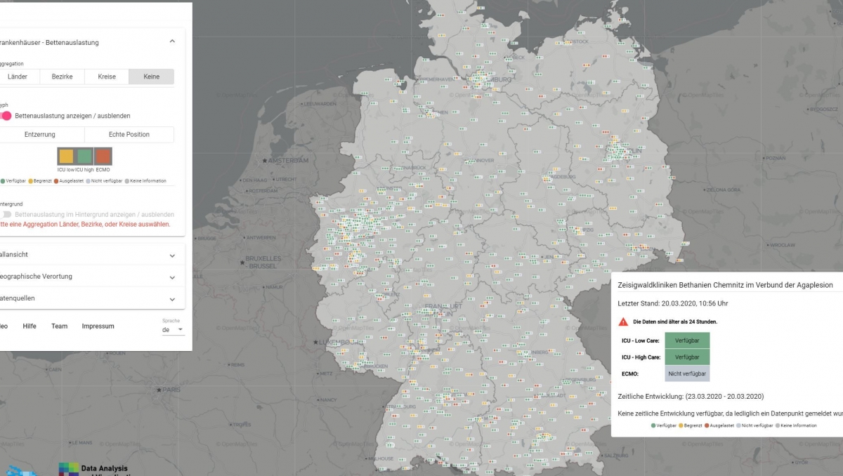 University of Konstanz develops visualization tool for illustration of critical care bed capacities all over Germany