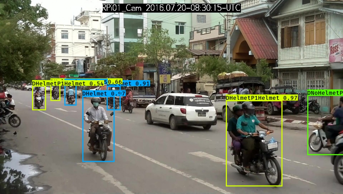 Using 91,000 frames of video data collected at multiple observation sites across Myanmar, the researchers first trained an algorithm to detect active motorcycles, the number and position of riders, and whether they were wearing a helmet or not – an approach which is based on the laborious labelling of data by hand. “It sounds fancy, but what we actually had to do was go through the hundreds of hours of raw footage first collected during the 2016 study and manually annotate the individual frames”, continues Lin. As the corresponding paper on detecting motorcycle helmet use with deep learning suggests, the algorithm proved accurate within -4.4 percent and +2.1 percent as compared to human observers, with slightly decreased performance for sites that had not been part of the training process.
