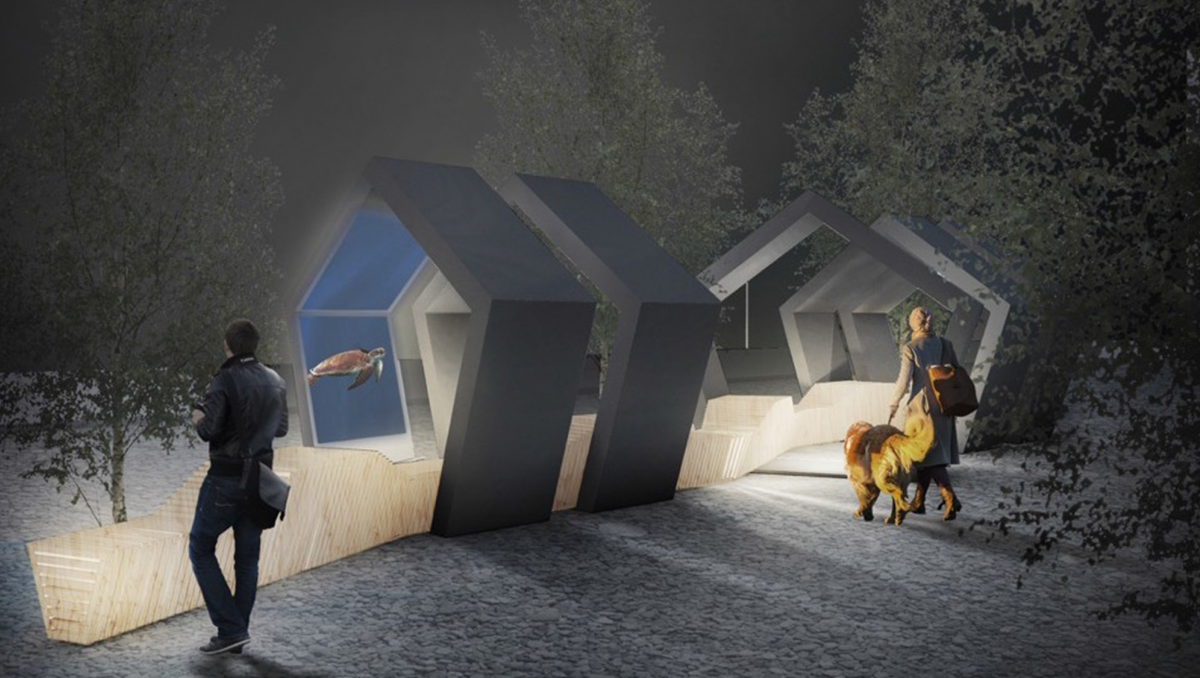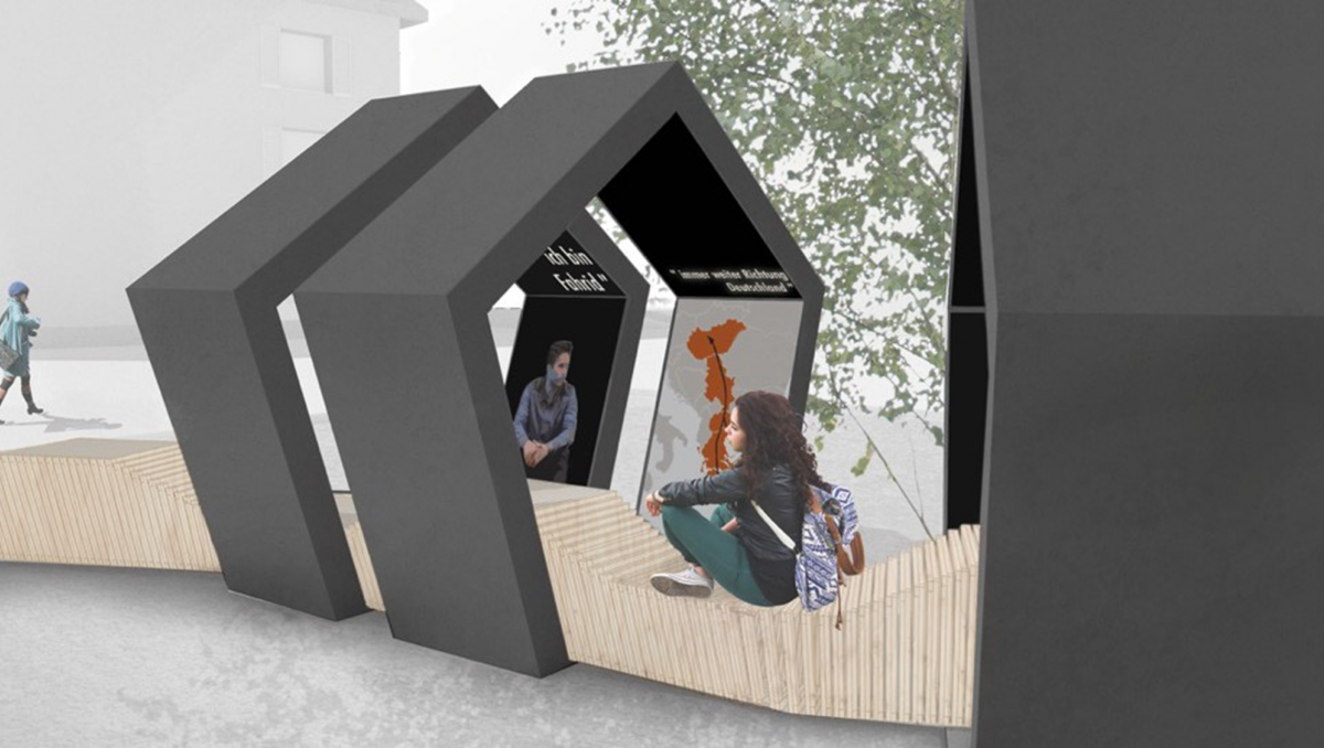 In den Fünfecken, die mit einigem Abstand zueinander angeordnet sind und dadurch gewollt Offenheit zulassen, sind Flatscreens und Interaktionselemente eingebaut, die wechselnde und aktuelle Themen und Inhalte aus dem Portfolio von Universität und HTWG zeigen. “Wir wollten einen Ort schaffen, der sich leicht in die Umgebung einfügt und der zum Verweilen einlädt”, erklärt das Team “5x5”. Besucherinnen und Besucher können sich auf der Bank ausruhen, je nach Standort die Natur, das Stadtleben oder die Aussicht genießen und sind dabei eingeladen, in Wissenschaft und Forschung einzutauchen. Wie tief, bleibt jedem selbst überlassen.
